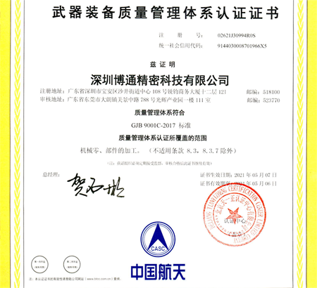 深圳市創(chuàng)思維企業(yè)管理技術(shù)服務(wù)有限公司輔導(dǎo)深圳博通順利通過GJB 9001C-2017武器裝備質(zhì)量管理體系認證與ISO9001質(zhì)量管理體系認證兩項認證。