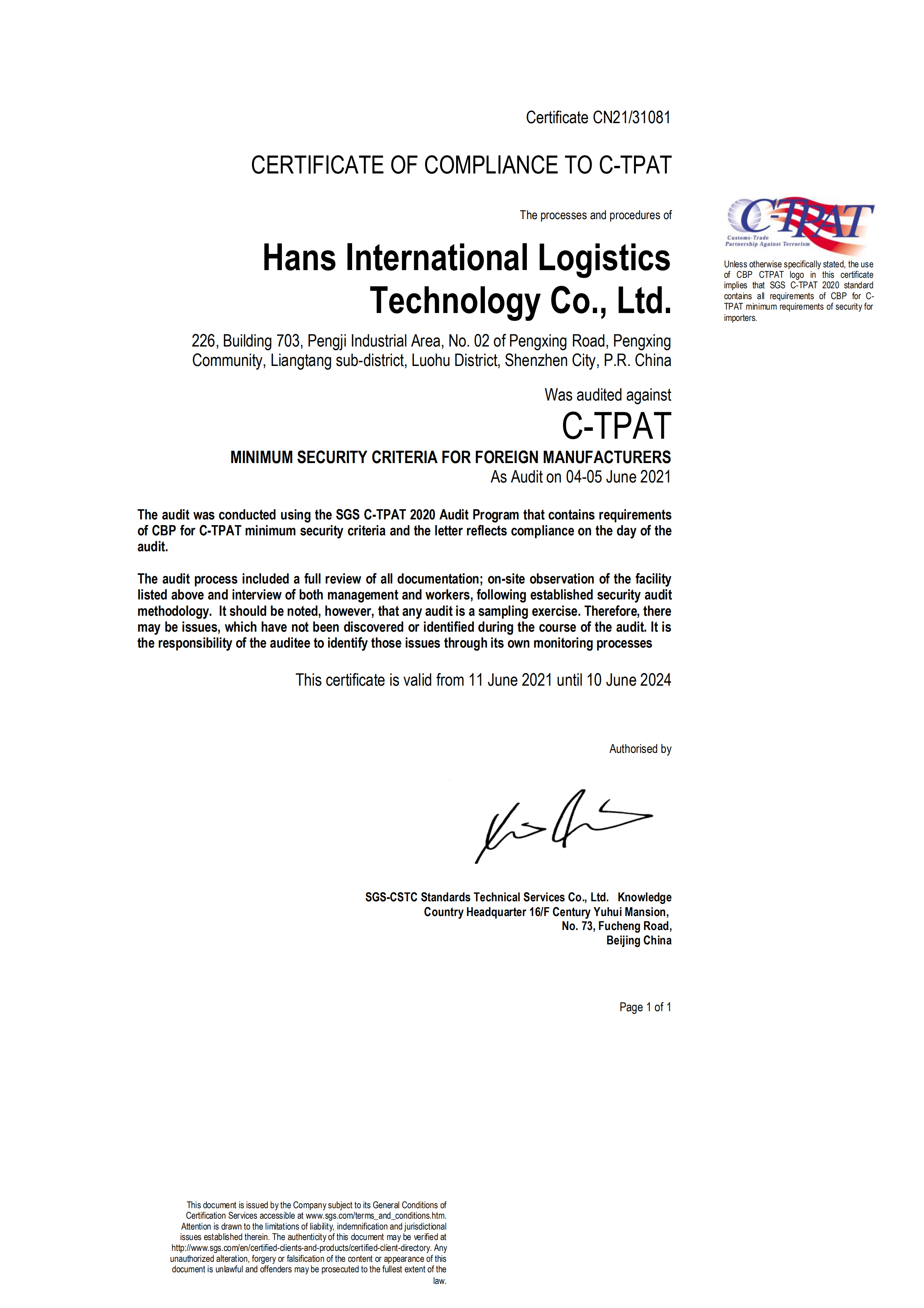 祝賀深圳市良泰物流有限公司、深圳欣欣達(dá)物流有限公司、順利通過ITS-GSV審核,同時也祝賀順欣達(dá)國際物流網(wǎng)絡(luò)技術(shù)(深圳)有限公司順利通過SGS-C-TPAT審核,為了保證客戶在規(guī)定的時間內(nèi)拿到合格證書,在疫情嚴(yán)重的鹽田區(qū)域創(chuàng)思維集團(tuán)派遣多位資深反恐專家及老師同步進(jìn)行輔導(dǎo),培訓(xùn),確保20天內(nèi)滿足客戶需求!