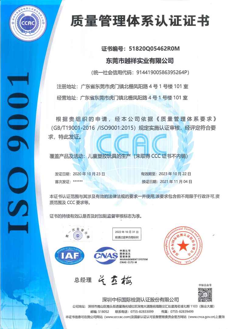 創(chuàng)思維在與越祥合作的五年里還輔導越祥通過迪士尼Disney驗廠、FDA認證、CE認證、環(huán)球影視NBCU驗廠。未來繼續(xù)合作,共同開拓美好未來!