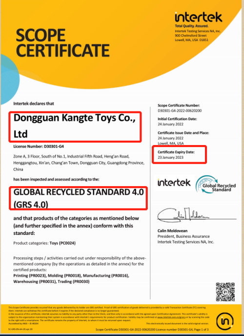 2022年初在創(chuàng)思維驗廠之家輔導(dǎo)下順利通過全球回收標(biāo)準(zhǔn)GRS認證。
